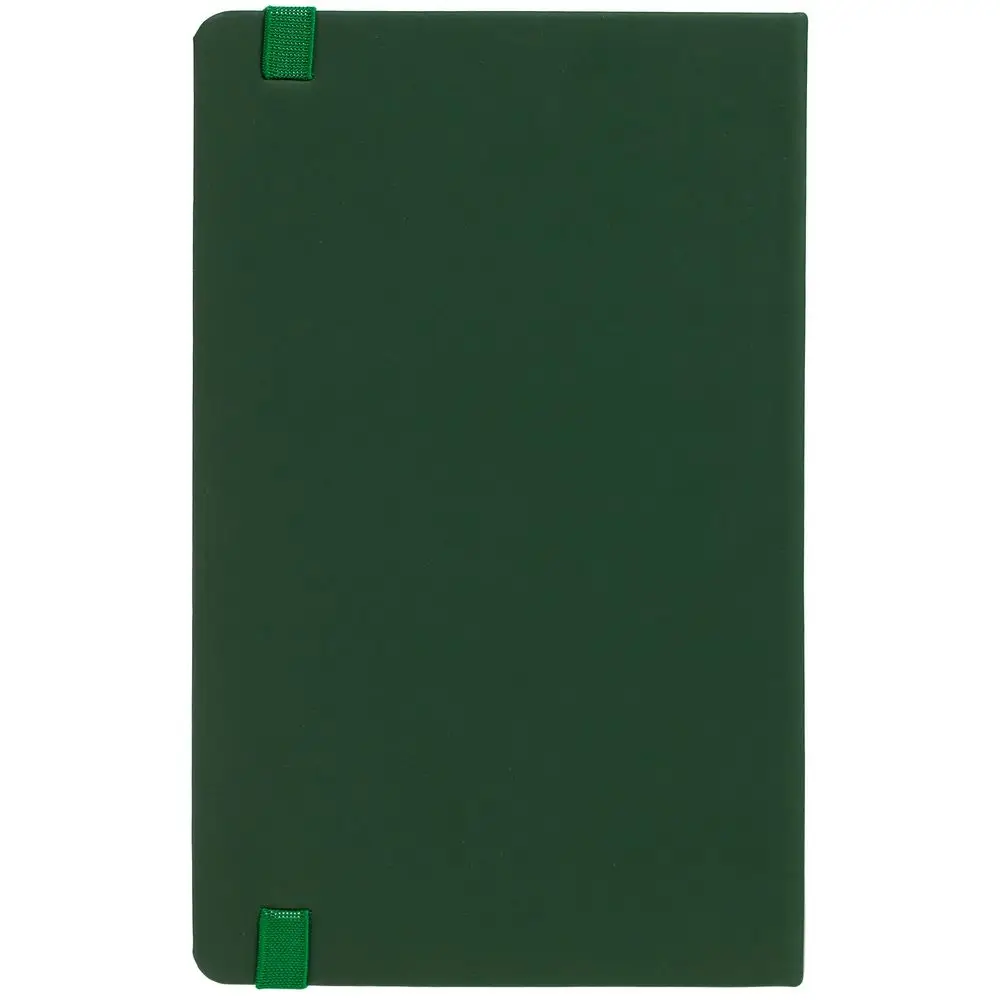 Блокнот в твердой обложке, выполнен из материала Soft Touch, зеленый FF, дополнен резинкой и ляссе в цвет обложки.