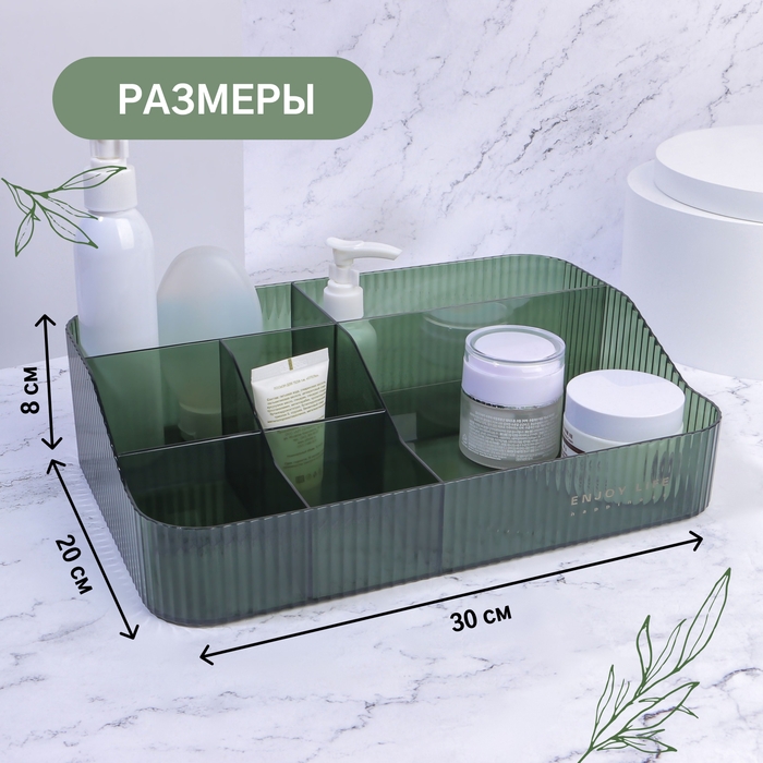 Органайзер для хранения маникюрных/косметических принадлежностей «GREEN», 7 секций, 30 × 20 × 8 см, цвет полупрозрачный/зелёный