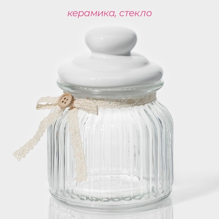 Банка стеклянная для хранения сыпучих продуктов Доляна «Варенье», 600 мл, 11×15,5 см, с керамической крышкой