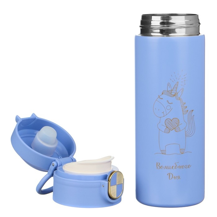 Термокружка для кофе и чая "Волшебного дня" идеальна для офиса, автомобиля, длительных прогулок и детям в школу. Благодаря специальному покрытию надежно лежит в руке.