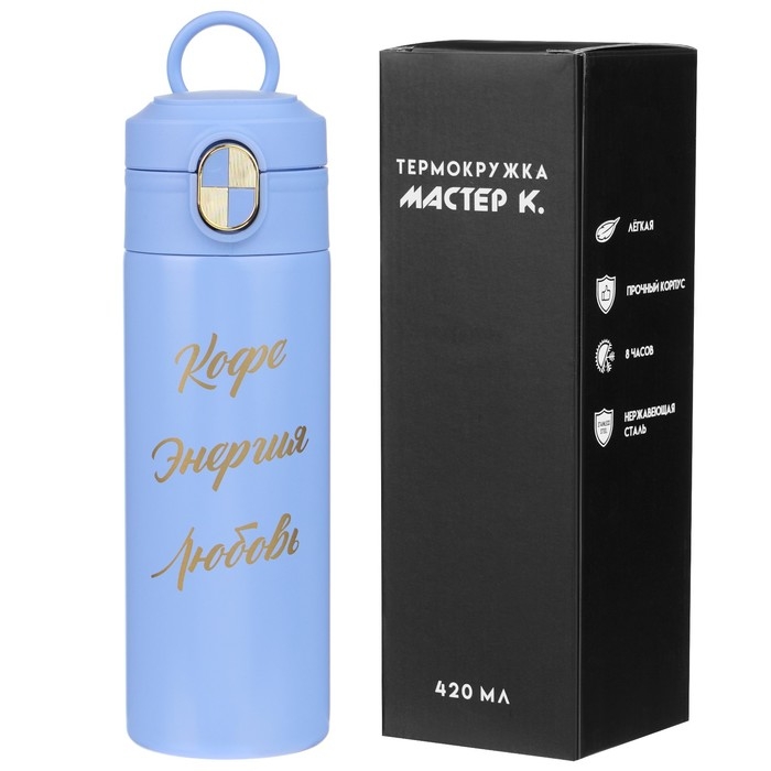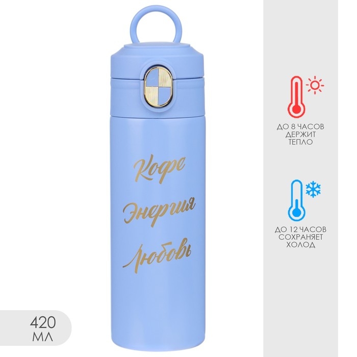 Термокружка, 420 мл, Simple "Кофе - энергия - любовь", сохраняет тепло до 8 ч