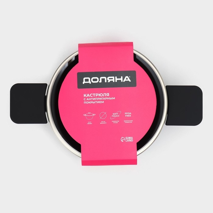Кастрюля с крышкой Доляна «Первый дом», 2,5 л, d=20 см, антипригарное покрытие, индукция, цвет чёрный