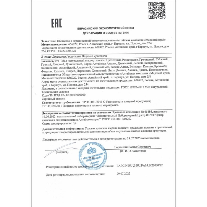 Мёд Алтайский Разнотравье Vitamuno - это натуральный продукт, произведенный в Алтайском крае. Он обладает уникальными свойствами и вкусовыми качествами, которые делают его незаменимым в рационе питания.