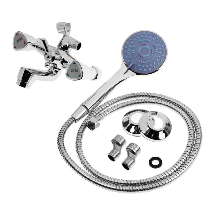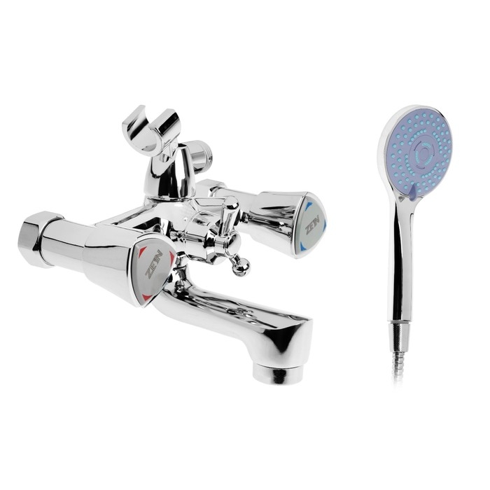 Смеситель для ванны ZEIN Z3727, двухвентильный, излив 10 см, лейка 3 режима, хром
