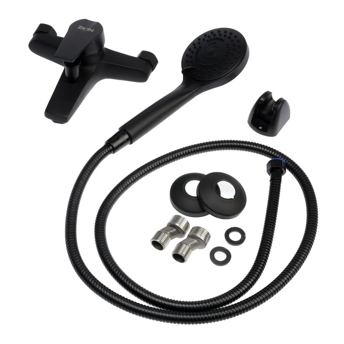 Смеситель для ванны ZEIN Z3841, однорычажный, душевой набор, лейка 5 режимов, черный