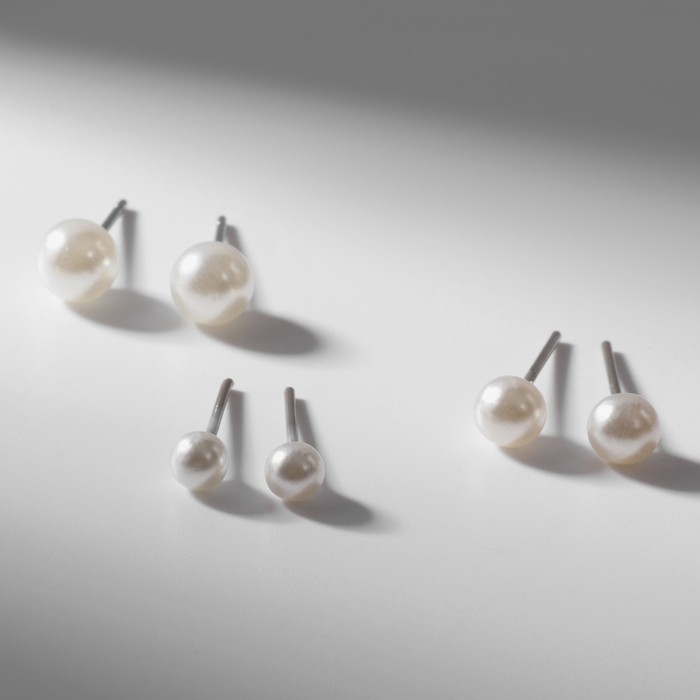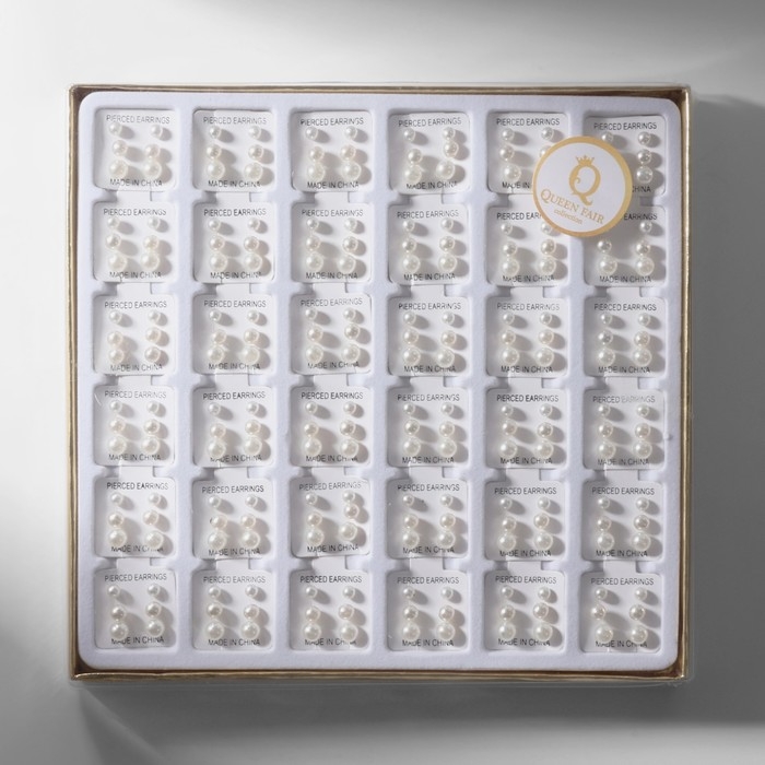 Пусеты в коробке 108 пар «Жемчужинки», 4, 5, 6 мм, цвет молочный в серебре