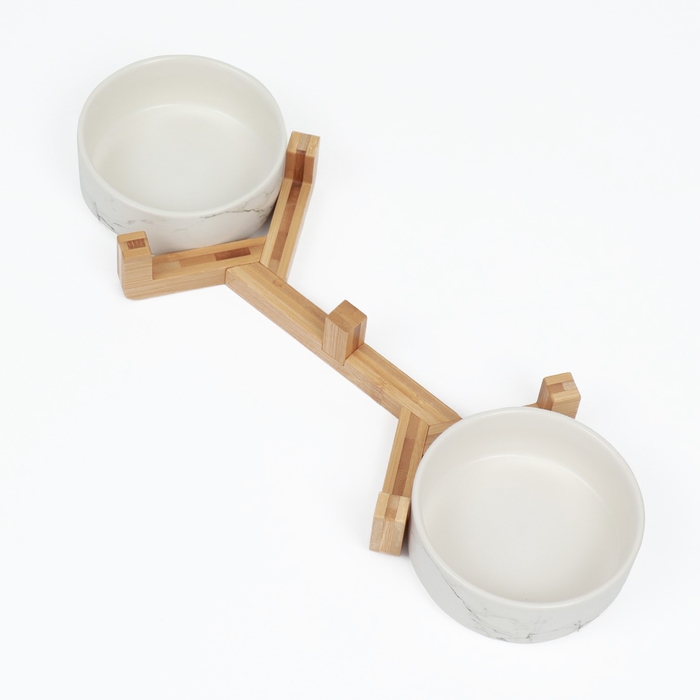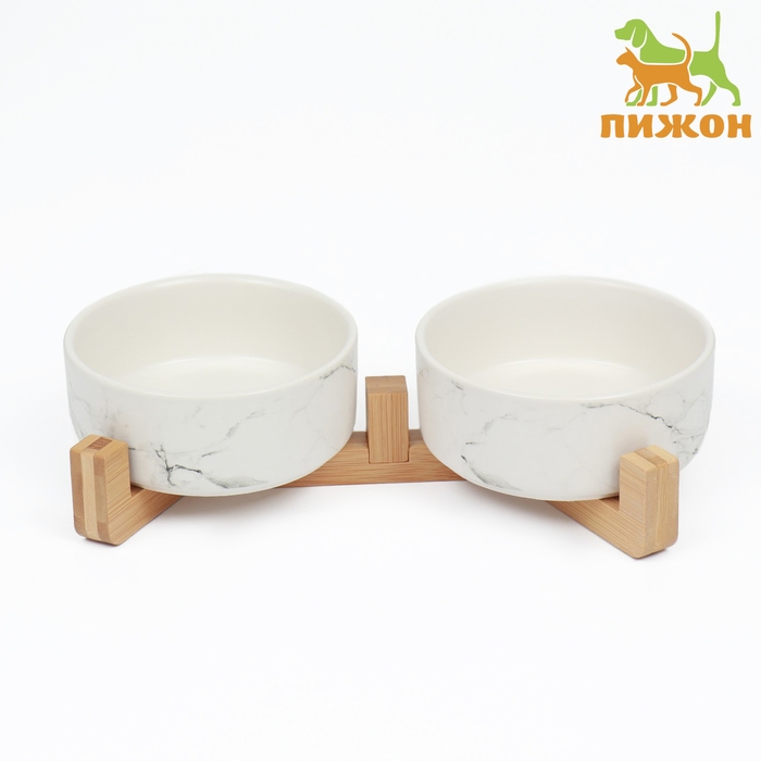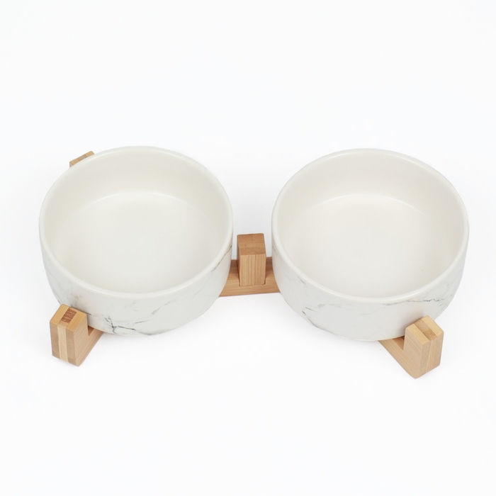 Миски керамические двойные на подставке 2 х 450 мл 28,5 х 15,5 х 7 см, мрамор