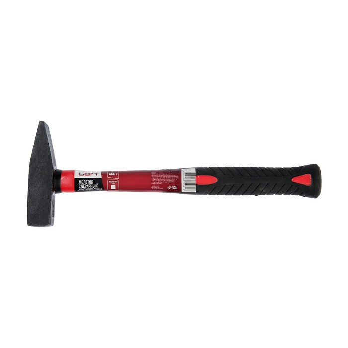 Молоток слесарный ЛОМ, квадратный боек, фиберглассовая обрезиненная рукоятка, 600 г