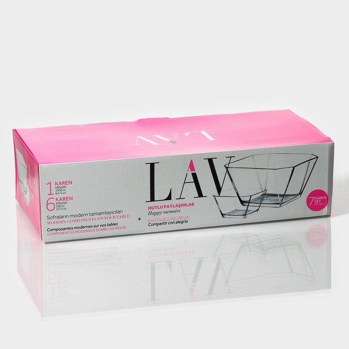 Набор стеклянных салатников Lav «Карен», 7 предметов: салатники 300 мл, d=10,6 см (6 шт), салатник 1,9 л, d=19,6 см (1 шт)
