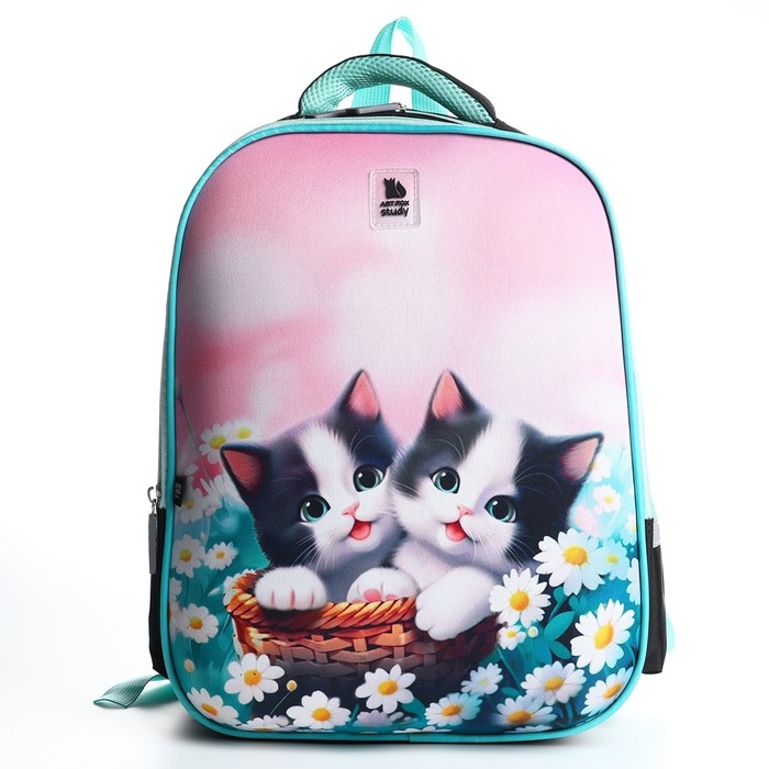 Рюкзак школьный каркасный 39х30х14 см «1 сентября: Милые котята»