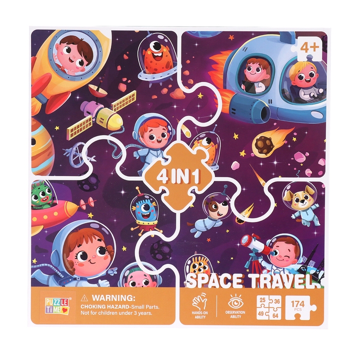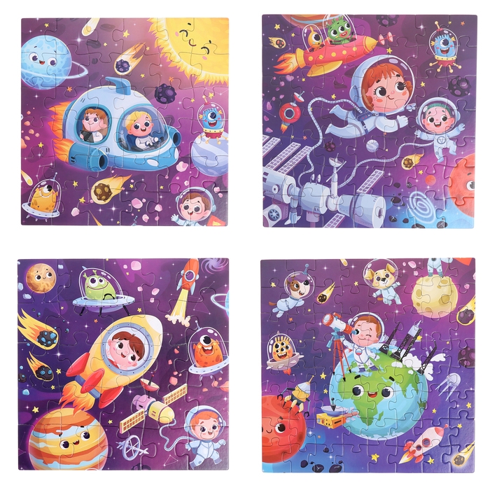 Пазлы 4 в 1 «Космическое приключение», 25, 36, 49, 64 элемента