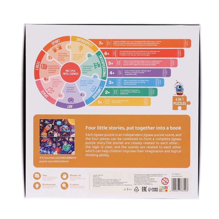 Ребёнок соберёт 4 маленькие истории, а затем объединит их в одно большое захватывающее приключение!