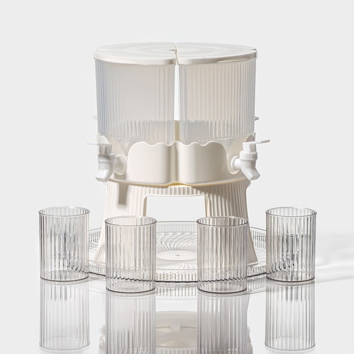 Диспенсер для напитков Доляна, 4 отделения 1,6 л, 4 стакана 350 мл, цвет белый