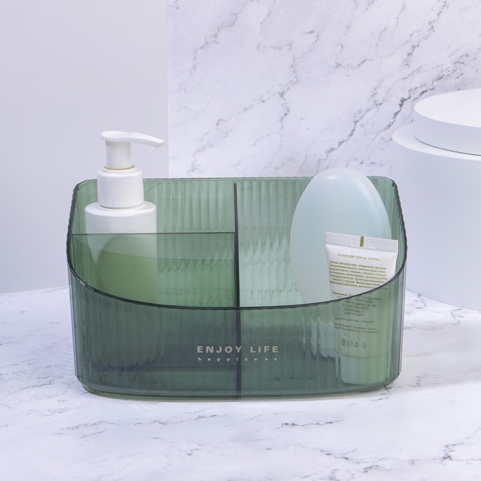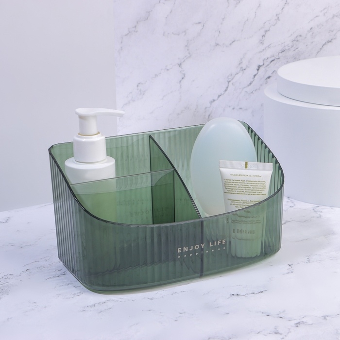 Органайзер для хранения «GREEN», 3 секции, 18,5 × 9,5 × 10 см, цвет полупрозрачный/зелёный