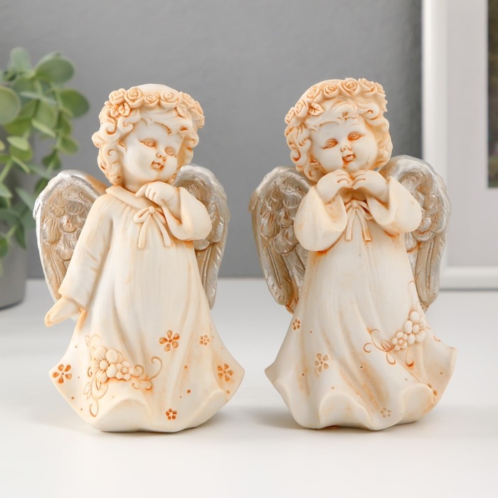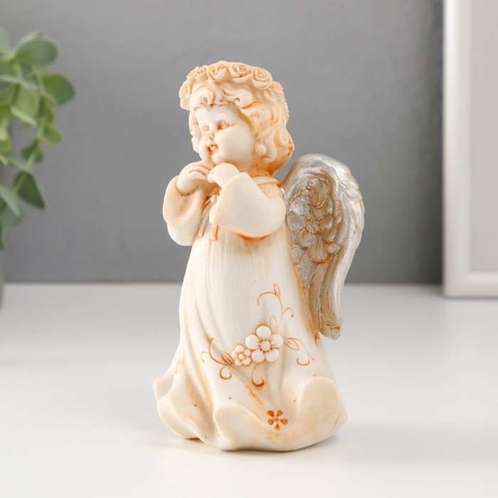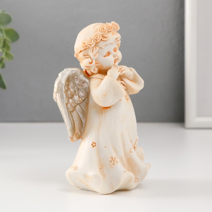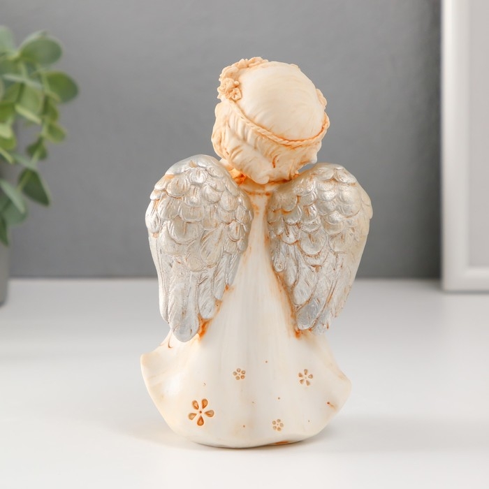 Сувенир полистоун "Ангел в цветочном платье и венке с серебристыми крыльями" МИКС 14,5 см
