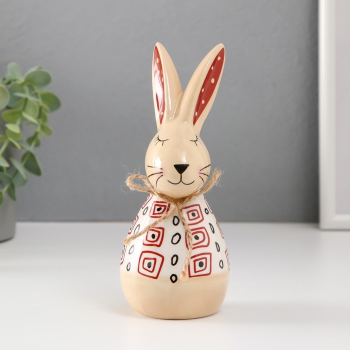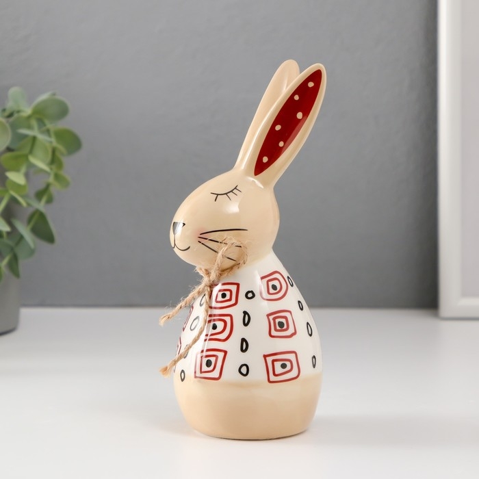 Сувенир керамика "Кролик спящий. Каракули" бело-бежевый с красными рисунками 7х6,5х16,7 см