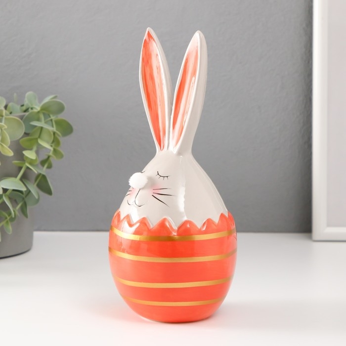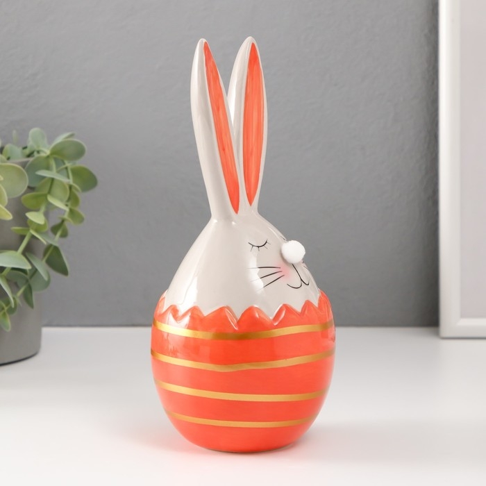 Сувенир керамика "Кролик в яйце с полосками" серо-оранжевый 9,2х9х20,5 см