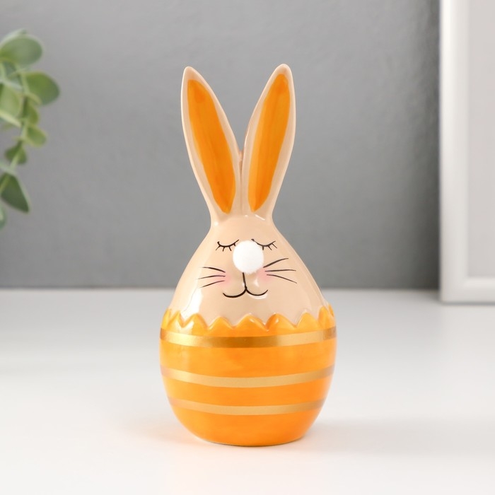 Сувенир керамика "Кролик в яйце с полосками" бежево-жёлтый 6,6х6,5х14,3 см