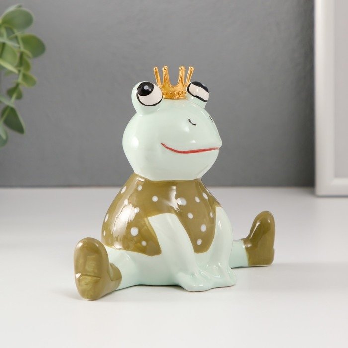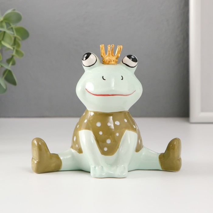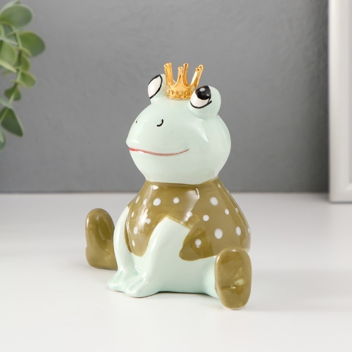 Сувенир керамика "Лягушонок в футболке в горошек, в короне" 14х7,8х11,8 см