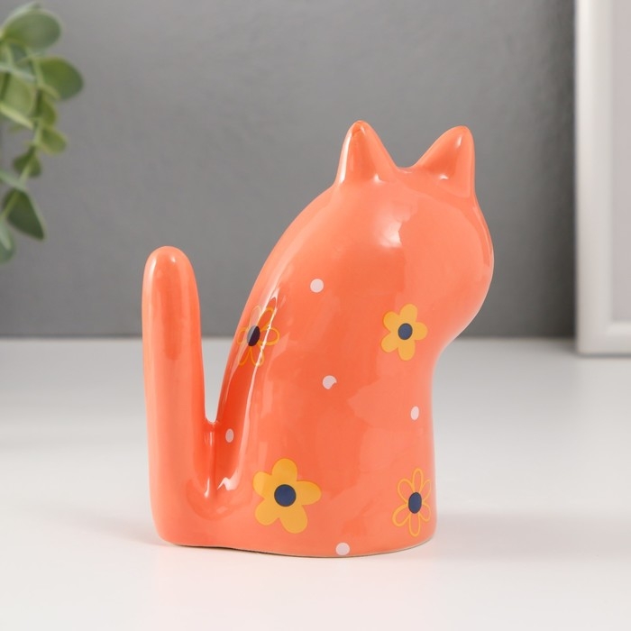 Сувенир керамика "Котик рыжий, с цветами, хвост трубой" 10,2х6,3х12,3 см