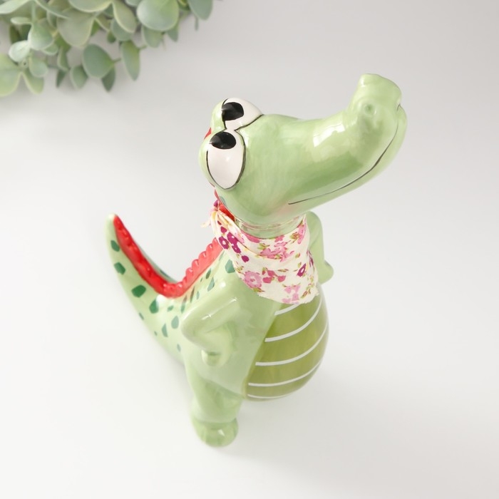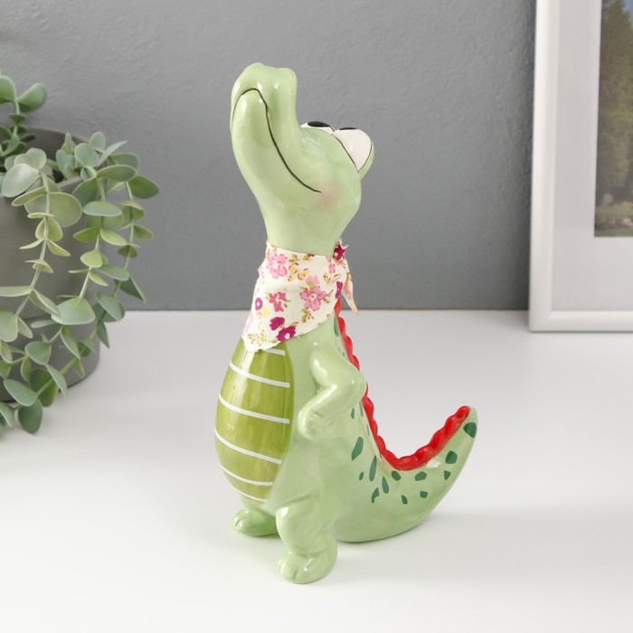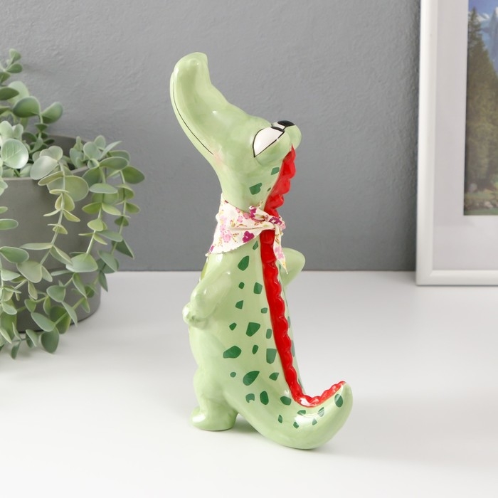 Сувенир керамика "Крокодил с косынкой" зелёный 14,2х9,5х24,5 см