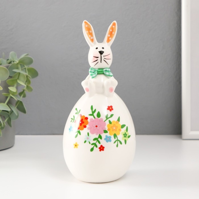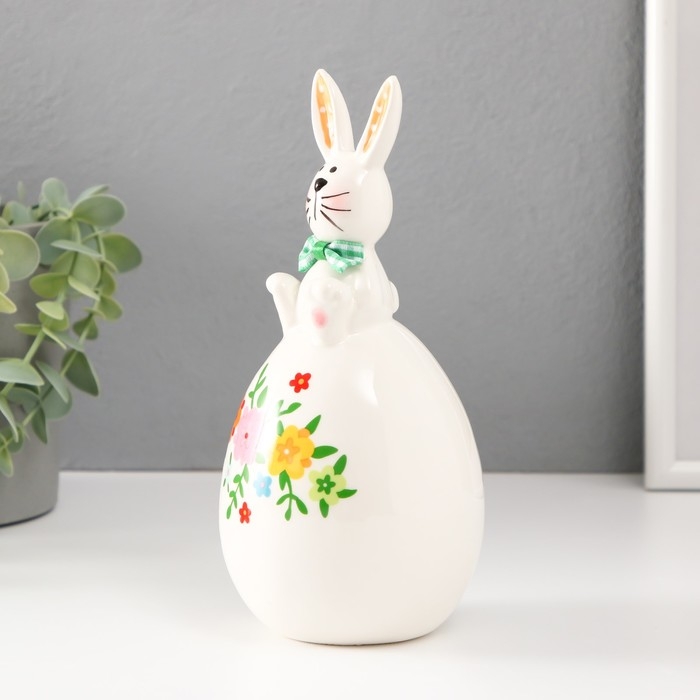 Сувенир керамика "Зайка на цветочном яйце" уши в горошек 8,8х8,8х19 см