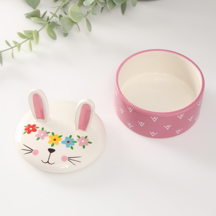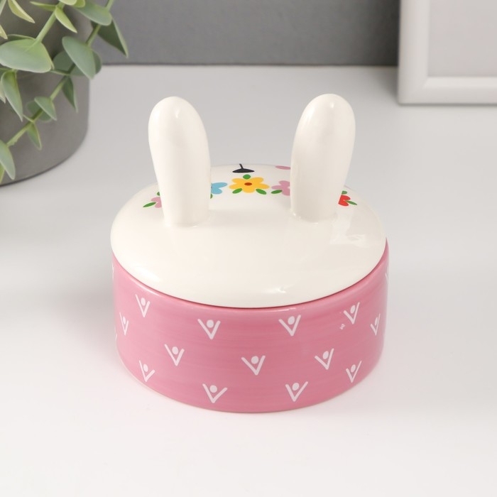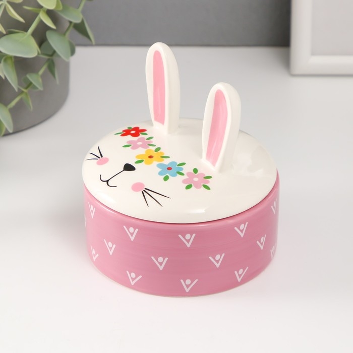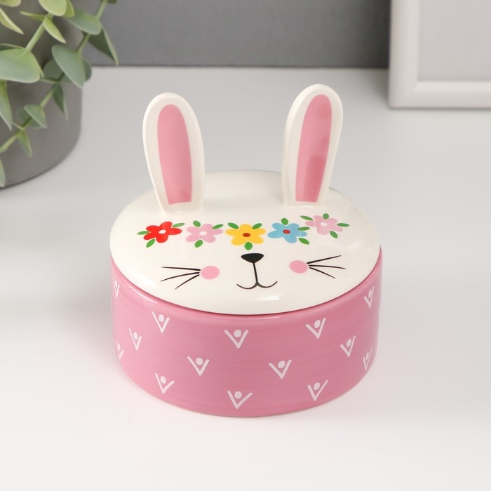 Шкатулка керамика "Зайка с веночком" 10х10х10,3 см