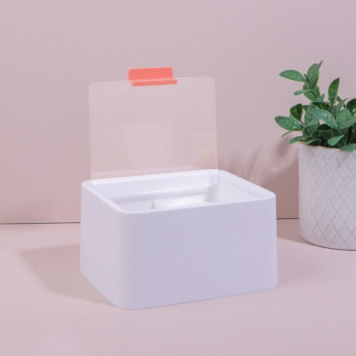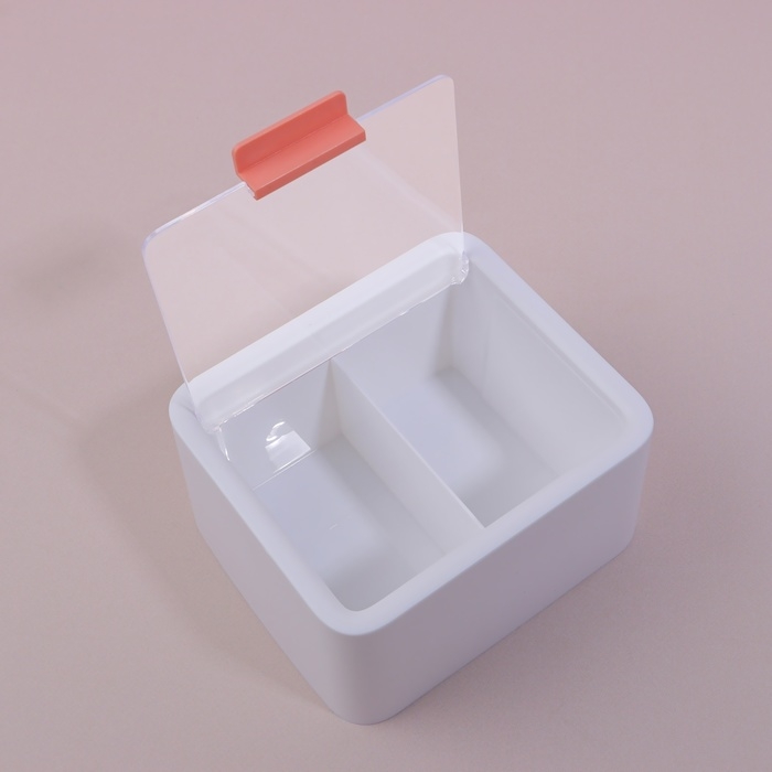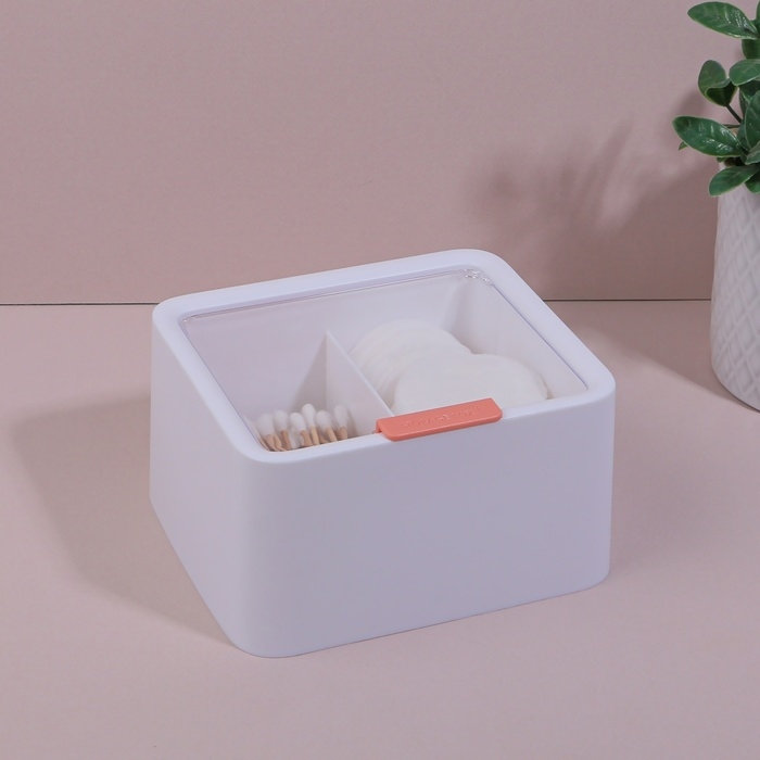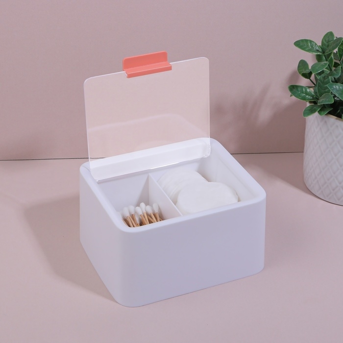 Органайзер для ватных палочек и дисков, с крышкой, 2 секции, 14,5 × 13 × 8 см, цвет белый/прозрачный