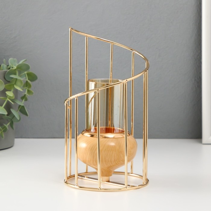 Подсвечник металл, стекло на 1 свечу "Лестница. Эко" d= 5 см золото 10х10х20 см