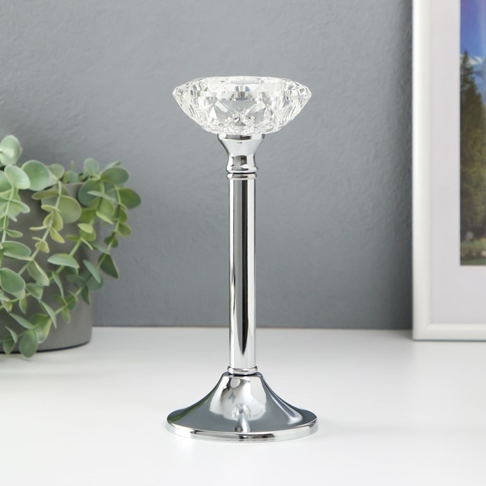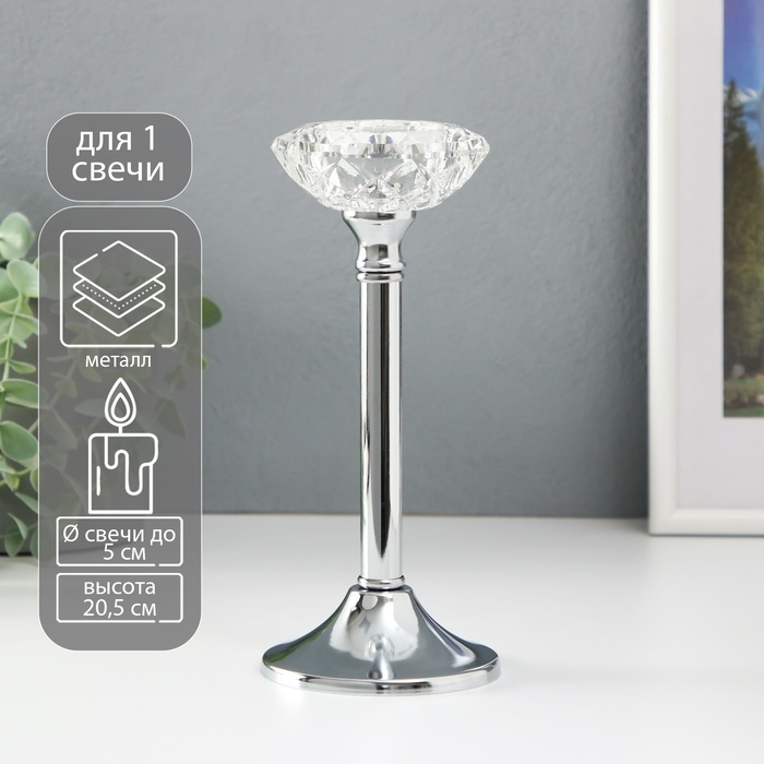Подсвечник металл, стекло на 1 свечу "Кристальная чаша" d= 5 см серебро 9х9х20,5 см