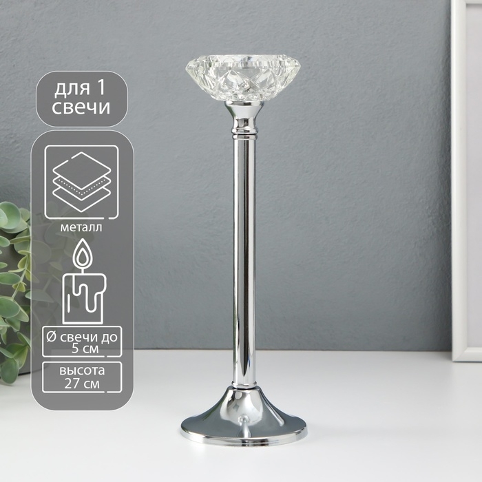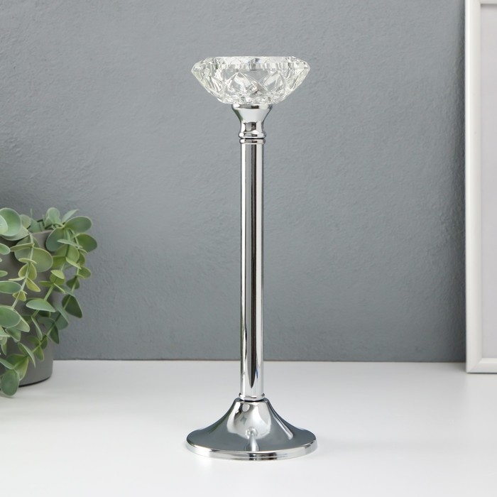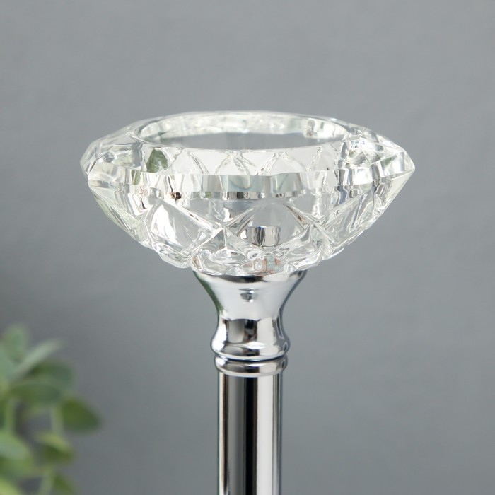 Подсвечник металл, стекло на 1 свечу "Кристальная чаша" d= 5 см серебро 9х9х27 см