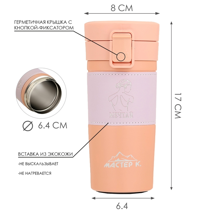 Термокружка, 380 мл, Style "Мечтай", сохраняет тепло 8 ч, 17.5 х 8.5 см