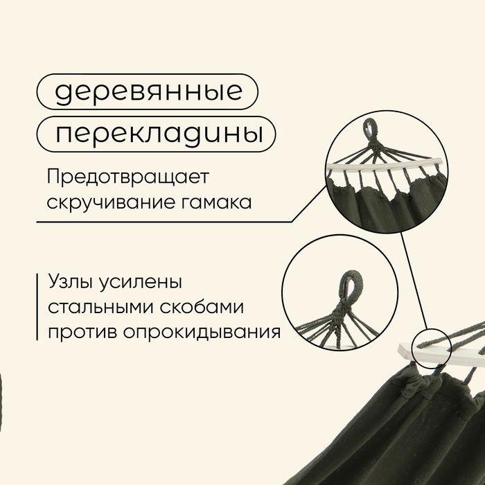 - Модель оснащена двумя деревянными перекладинами, которые предотвращают скручивание гамака.
