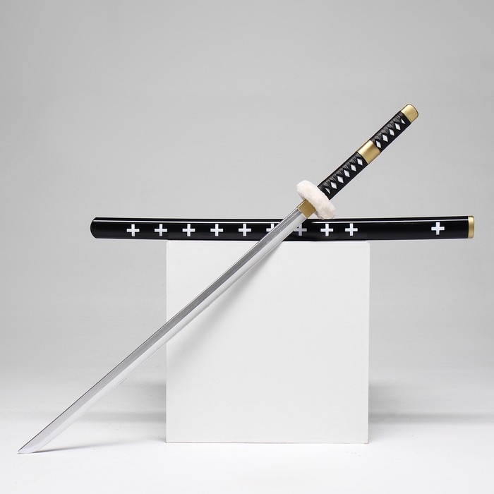 Сувенирное оружие "Катана Ло" 102 см, черная с белыми крестами, пенополистирол
