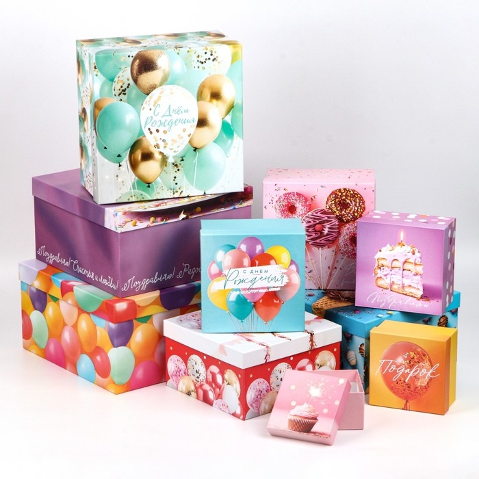 Набор коробок 10 в 1, упаковка подарочная, «Шары», 10.2 х 10.2 х 6‒28.2 х 28.2 х 15 см