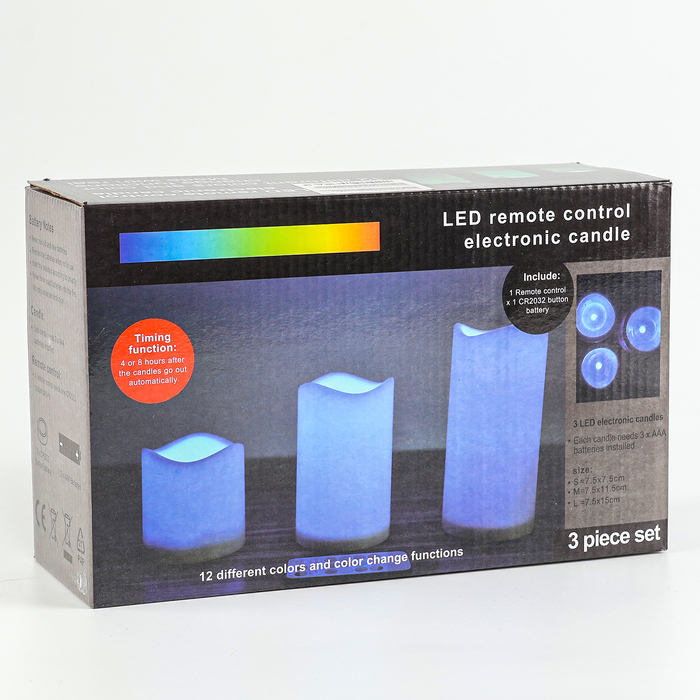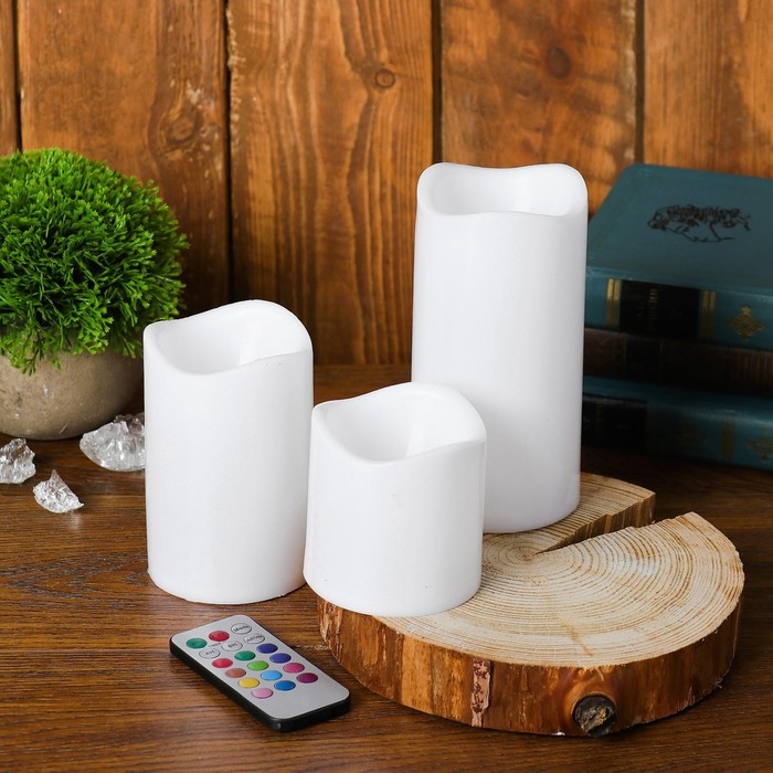 Свеча светодиодная «Тройка», с пультом, набор 3 шт.