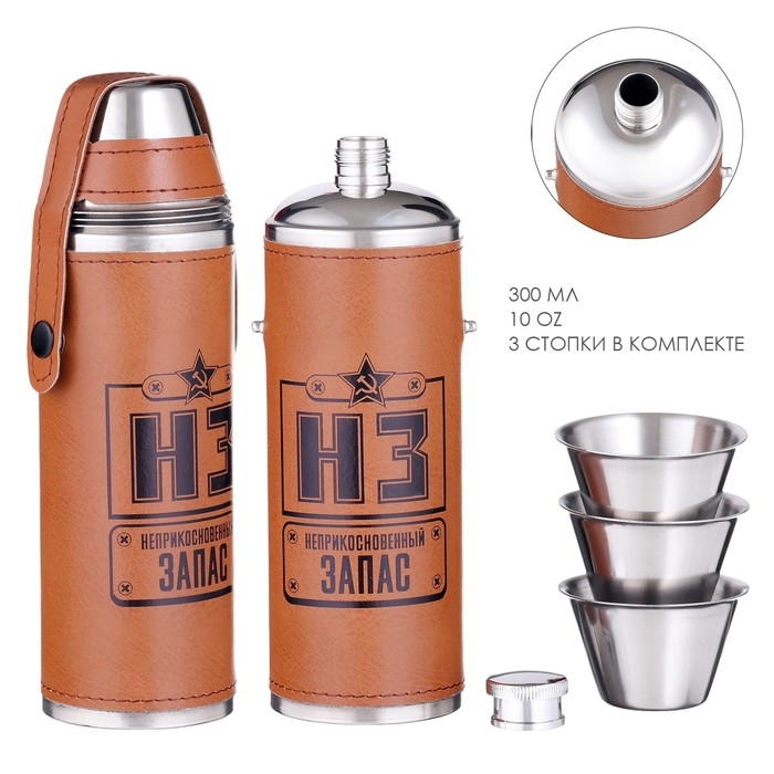Фляжка для алкоголя "Запас", нержавеющая сталь, чехол, 300 мл, 3 стопки по 30 мл