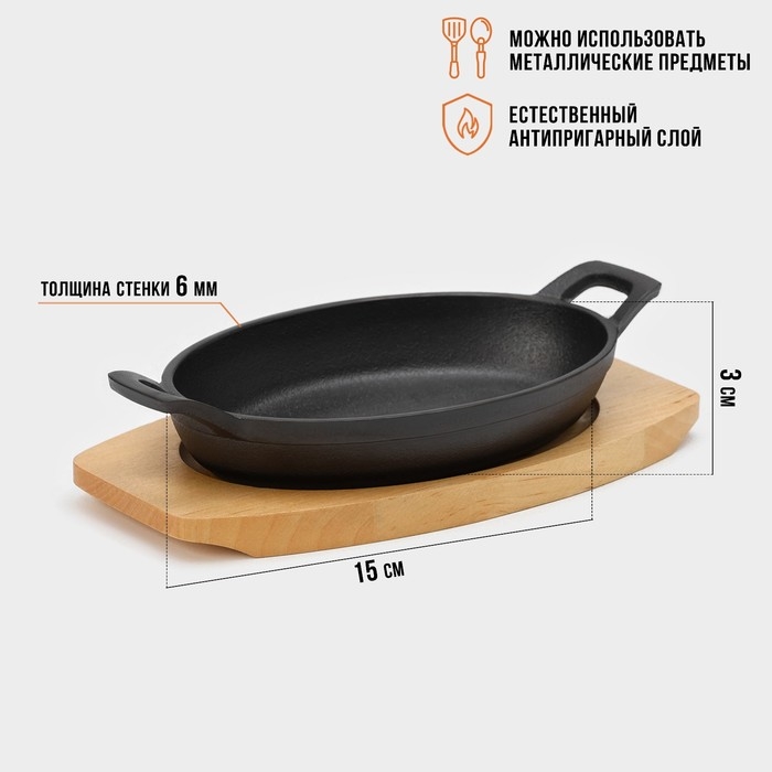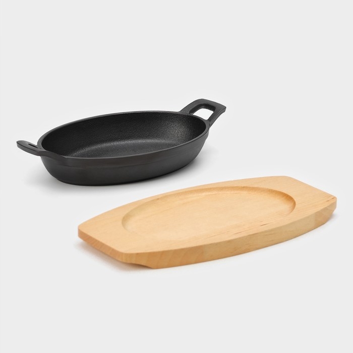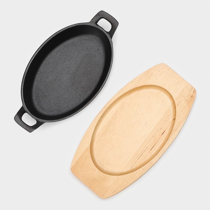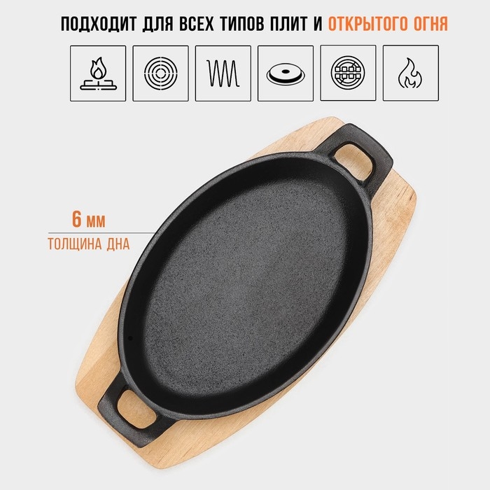 Сковорода чугунная Magma. В комплекте идёт деревянная подставка.