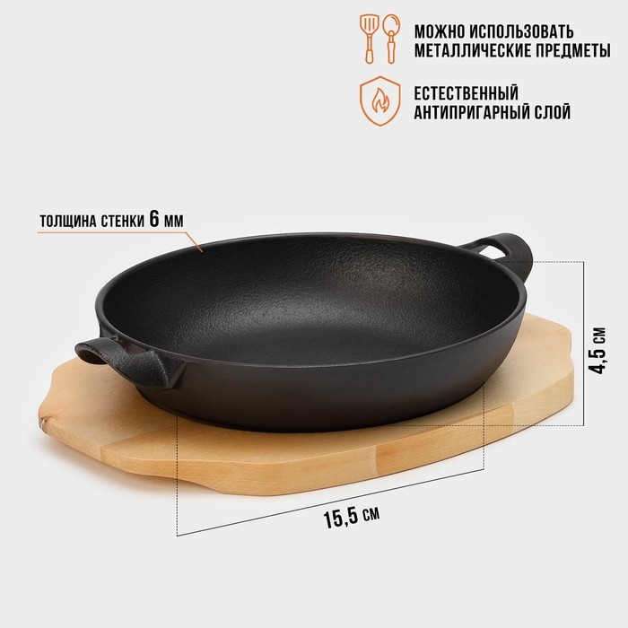 Сковорода чугунная Magma. В комплекте идёт деревянная подставка.