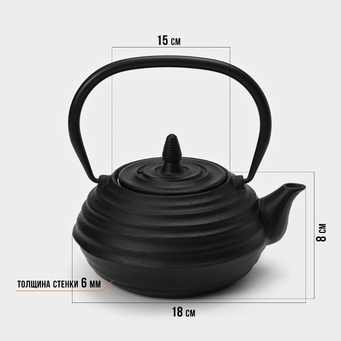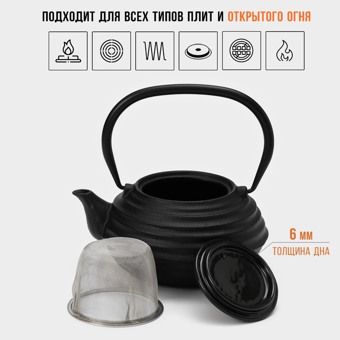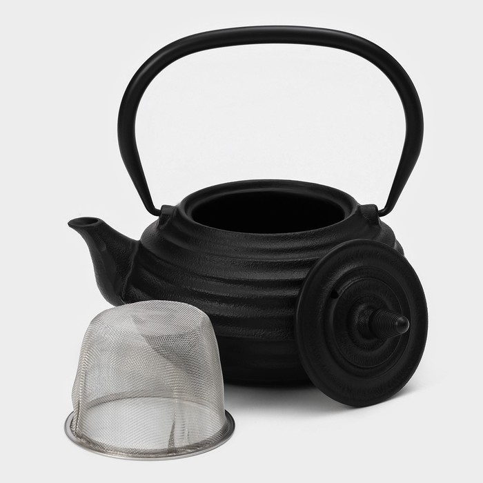 Чайник для плиты Доляна «Чёрный тигр», 700 мл, с ситом, чугун, эмалированное покрытие внутри, индукция, цвет чёрный