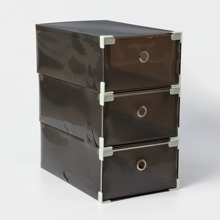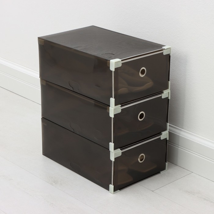 Коробка для хранения обуви выдвижная Доляна Large size, 22×34×13 см, 3 шт, цвет черный