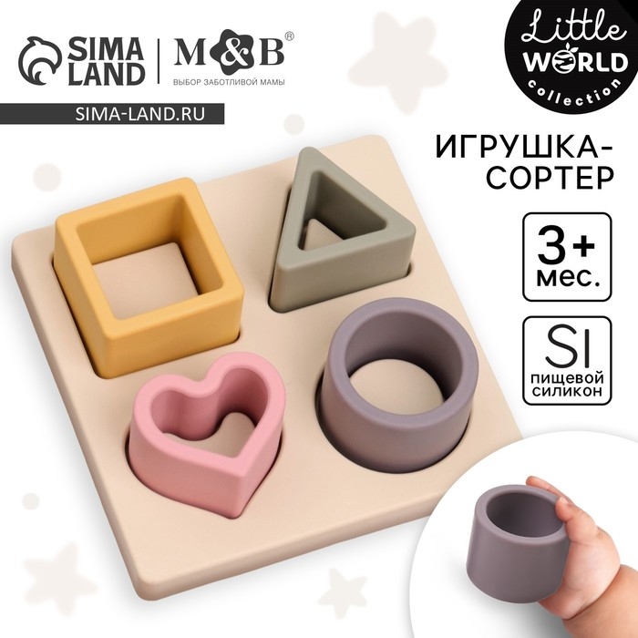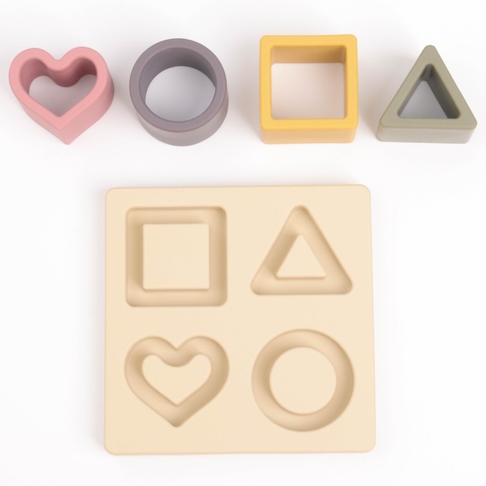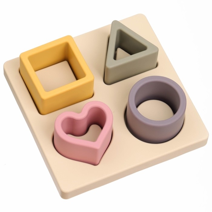 Развивающая игрушка - сортер «Изучаем фигуры», пищевой силикон, цвет бежевый, Mum&Baby