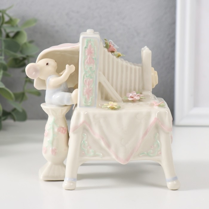 Сувенир керамика музыкальный "Зайчик с ретро фотоаппаратом" 8,5х10,5х11 см