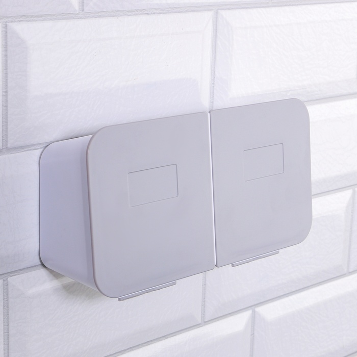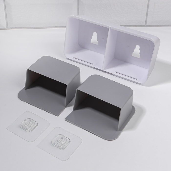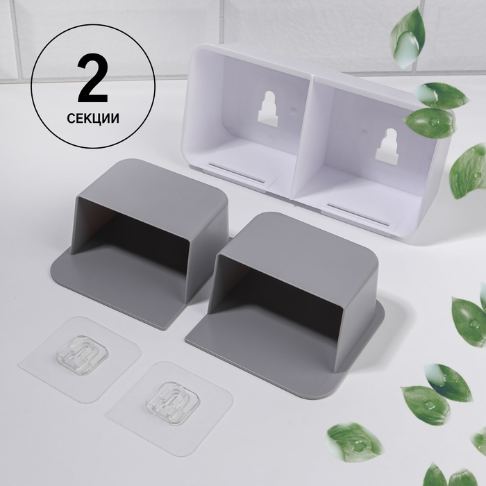 Органайзер для хранения, навесной, 2 секции, с клеевыми крючками, 20,2 × 11 × 6,4 см, цвет белый/серый