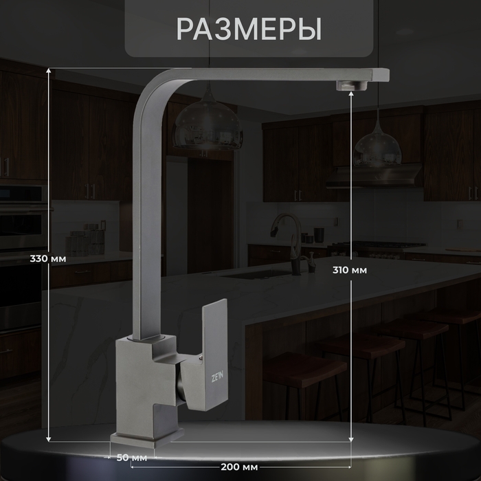 Смеситель для кухни ZEIN, квадратный, картридж 35 мм, нержавеющая сталь, сатин