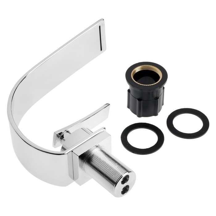 Включение и выключение воды происходит рычагом. Необычная форма излива создает плоскую широкую струю, которую можно сравнить с «водопадом», поэтому поток воды называют каскадный.