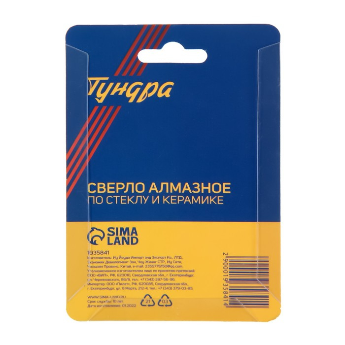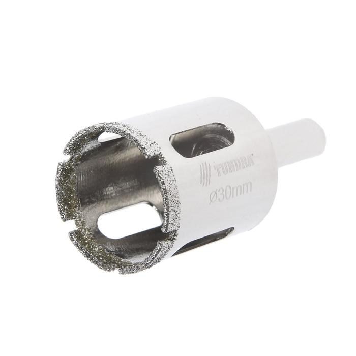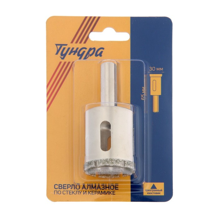 Сверло алмазное по стеклу и керамике ТУНДРА, трехгранный хвостовик, 30 х 65 мм