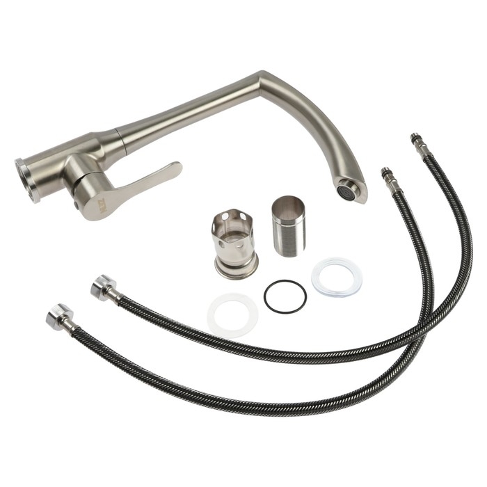 Смеситель для кухни ZEIN Z2390, гибкий излив, картридж керамика 40 мм, нерж. сталь, сатин