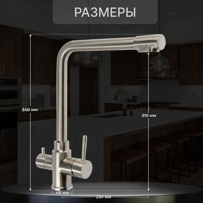 Смеситель для кухни ZEIN Z3737, с выходом под фильтрованную воду, высота излива 31 см, сатин