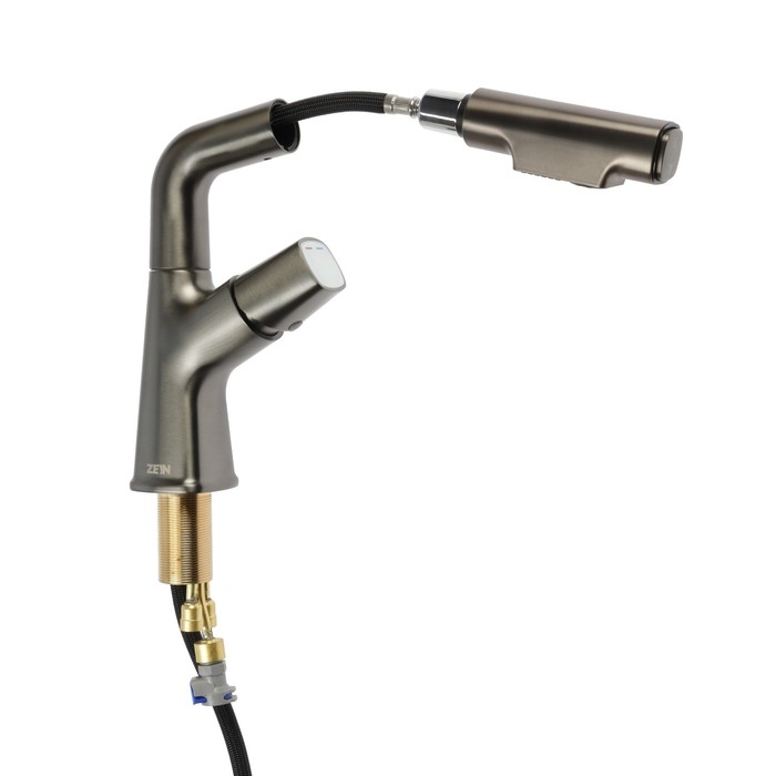 Смеситель для кухни ZEIN Z3781, вытяжной излив регулировка высоты 18-25 см, аэратор 2 режима